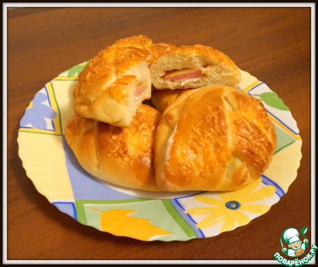 Булочки с ветчиной и сыром от Светы diana1616 .Стряпала специально для сына,он у меня любит такие штучки.Вместо ветчины вареная колбаска.После пробы сын внес эти булочки в свой собственный список вкусностей,которыми мама обычно балует его на выходных.