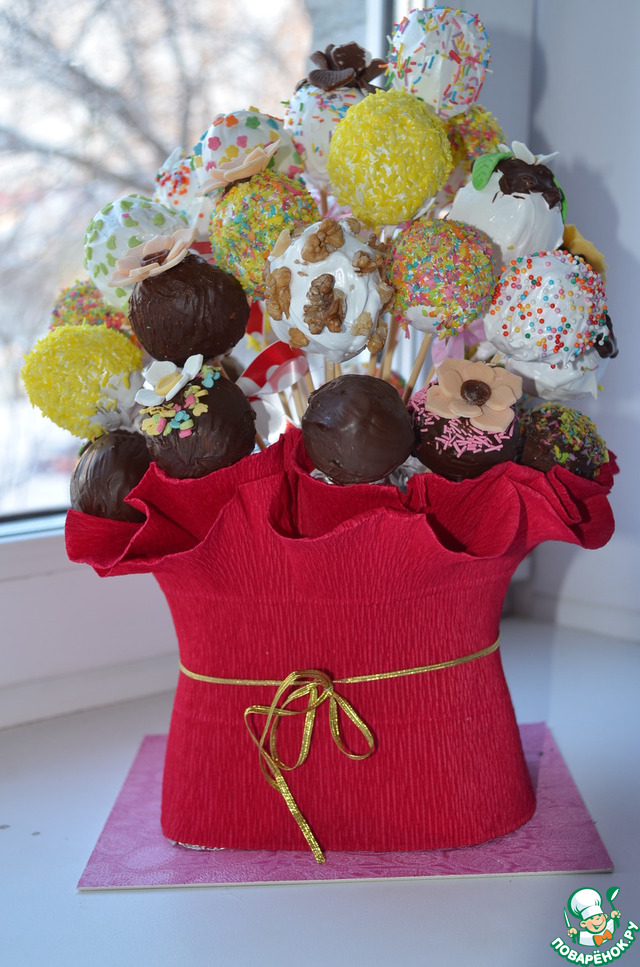 Вот такой прекрасный вкусный подарок получился из Кейк попсов. Особенно по вкусу малышам, смотрится великолепно.