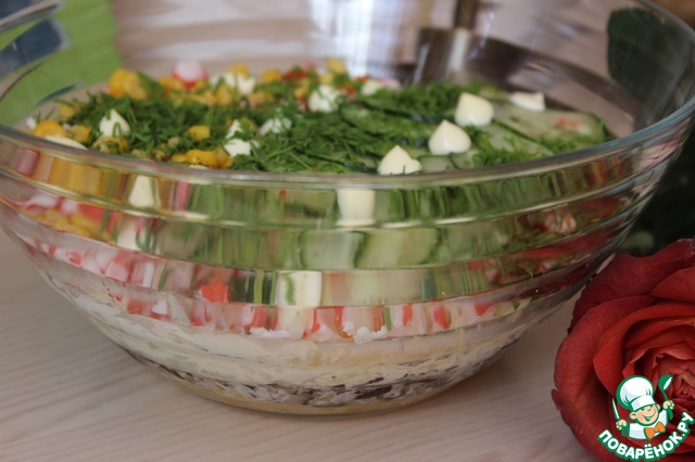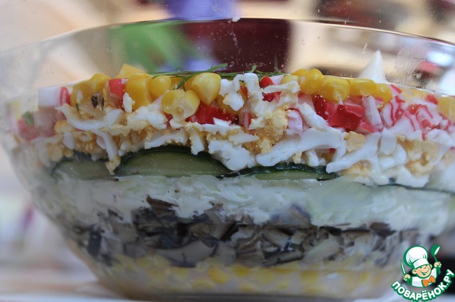 И в заключение оригинальный и ИЗУМИТЕЛЬНЫЙ салат "Грибы в засаде" по рецепту Марины (Маришка-2015).