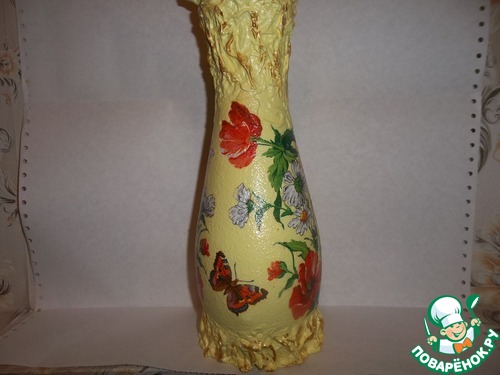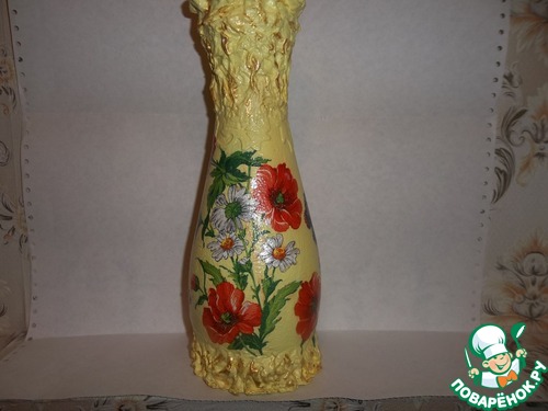 Много видела превращений из просто бутылки в вазу, но ЭТОТ САМЫЙ ШИКАРНЫЙ!!! Получилась именно ВАЗА!!! Класс! У тебя есть собственный почерк и чувство стиля!