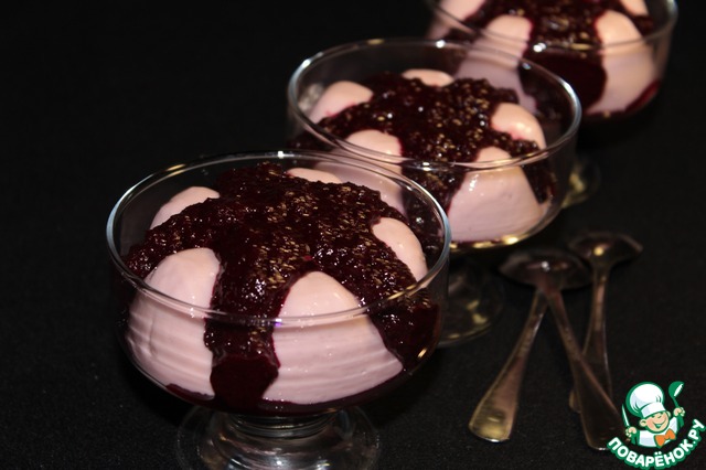 Малиновая панна-котта с клубничным соусом Наташи FoodStation1 Решение готовить было принято еще после публикации рецепта, только не с клубничным соусом, а с вишневым. Вино использовала, которое было дома, белое полусладкое. Ягоду использовала домашнюю свежезамороженную и малину, и вишню. Так как ягодка у нас кислая, то сахар даже не стала корректировать и получилось вкусно, нежно с приятной кислинкой. Крем получился густой и не удалось его распределить по периметру креманочки и он закрыл всю красоту панна-котты. В виду отсутствия формочек заливала в доннышки от полторашек и вышло 3 чудесных порции