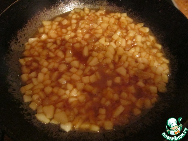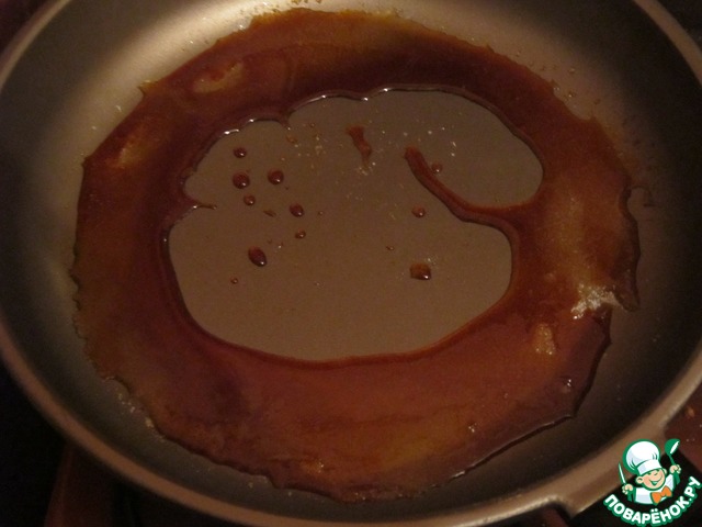 А теперь история о том, как я его готовил! В первую очередь, приготовил карамель для грушевого слоя, с которой я немного повозился: на сковороде с антипригарным покрытием готовить карамель невозможно, это выглядело примерно так -