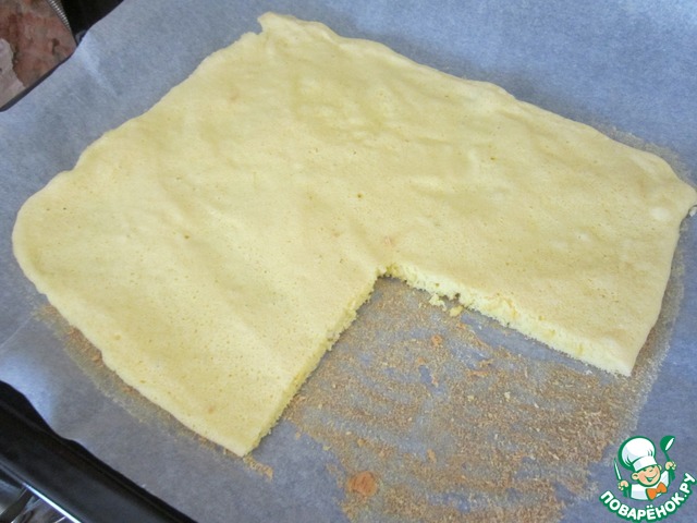 Я его распределил по силиконовым формочкам и отправил в холодильник для застывания - это все я делал вечером около 22:00. На следующий день я решил приготовить бисквит в новой духовке: испек, достал его, вырезал одно бисквитное колечко и понял, что он не совсем пропекся: