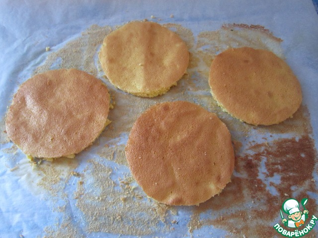 И пока я разобрался с этой духовкой, в итоге он у меня получился, но я не рассчитал, что у меня кольца для формирования десерта были достаточно большими и таких бисквитных колечек у меня получилось всего 4 штучки: