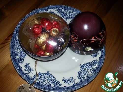 А вот такое замечательное пасхальное яйцо внутри с конфетками нам привезли дети.
