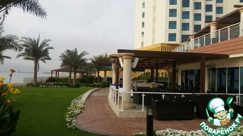 Потом мы пошли на пляж, несмотря на то, что в эмиратах очень мало зелени, в нашем отеле было много зелени, прямо небольшой оазис посреди пустыни.