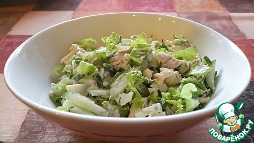 Вкусный, легкий и нежный салатик! Приготовила с отварной грудкой.