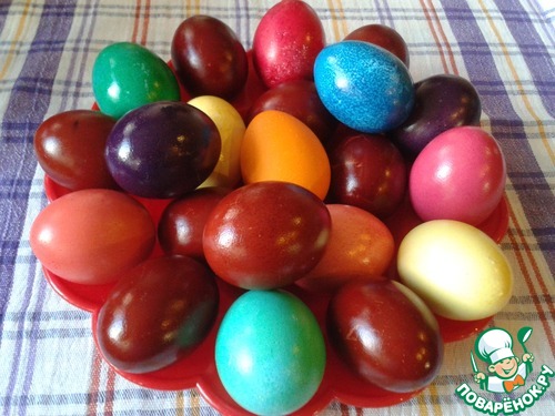 А вот такие у меня были крашеные яйца. Красила луковой шелухой и пищевой краской.