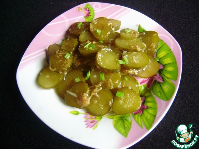 Интересный и вкусный способ подать обычные соленые огурцы.