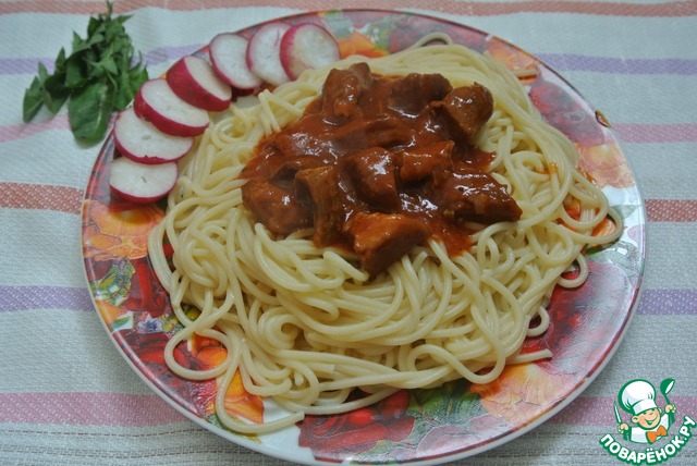 Из-за огромного изобилия на поваренке рецептов не доходили руки выставить отчет по данному излюбленному рецепту. Этот рецепт действительно излюбленный нашей семьей. Когда у нас в меню этот гуляш, мы все гарниры перепробуем. И со всеми ну очень-очень вкусно.Вот что, что, а этот гуляш рекомендую обязательно!!!