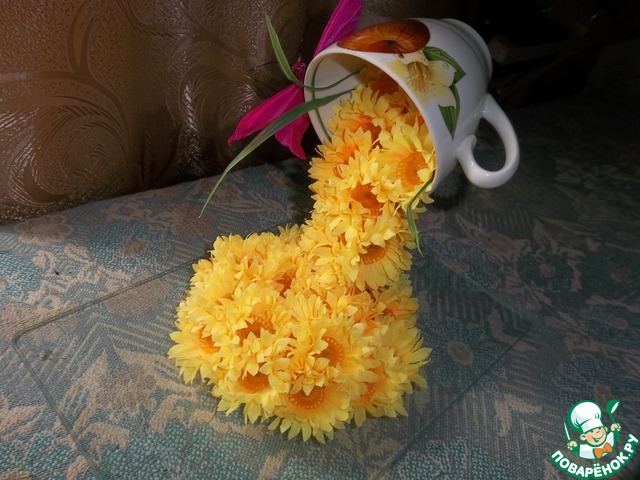 Это "парящая" чашка,вообще вариантов много,но я решила сделать её цветочками. Вот такая получилась.