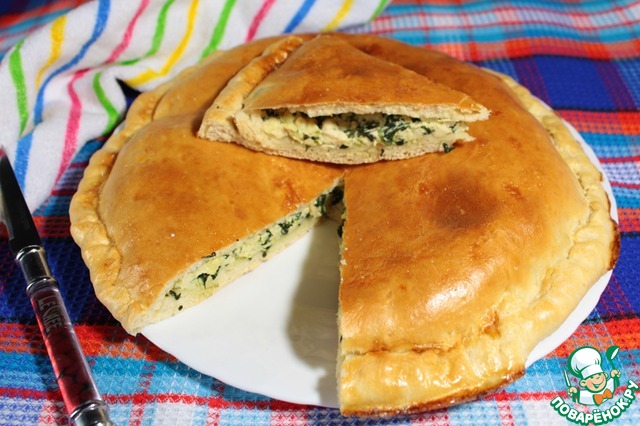 Спанакопита-Пирог со шпинатом по-гречески по рецепту Светланки Жен Жен. Не знаю я что представляет собой сыр Фета, но предположила, что должен быть солоноватый и оказалось, что не ошиблась (позже поинтересовалась), потому чуть-чуть начинку подсолила на наш вкус. Готовила со свежезамороженным шпинатом и на домашнем дрожжевом тесте, тонко его раскатав. Это такая вкуснотища получилась, что на следующий день меня попросили повторить, но уже было не из чего, шпинат истратила весь