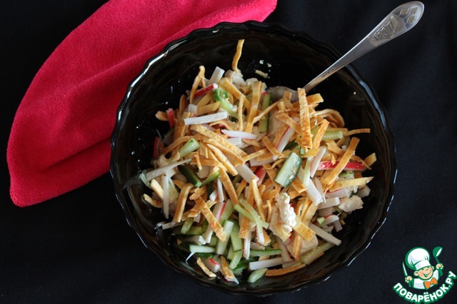 Салат "Женский" с сыром сулугуни по рецепту Наташи LNataly. Про салат писала уже в своем отчете со своего Дня рождения, но не писала, что готовила с этим чудесным домашним сырком. Какой нежный салатик, уже несколько раз повторяли за последнее время.