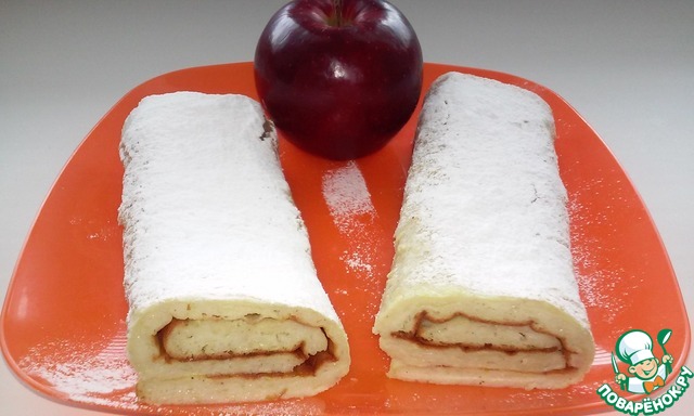 Яблочный рулет от Людочки (Людмила Новос-лова). Очень люблю выпечку с яблочками и корицей. И этот рецептик мне очень понравился! Допустила такую вольность: яблоки добавила прямо в тесто. Выпекала на силиконовом коврике. Отлично скрутился и порадовал своим вкусом!