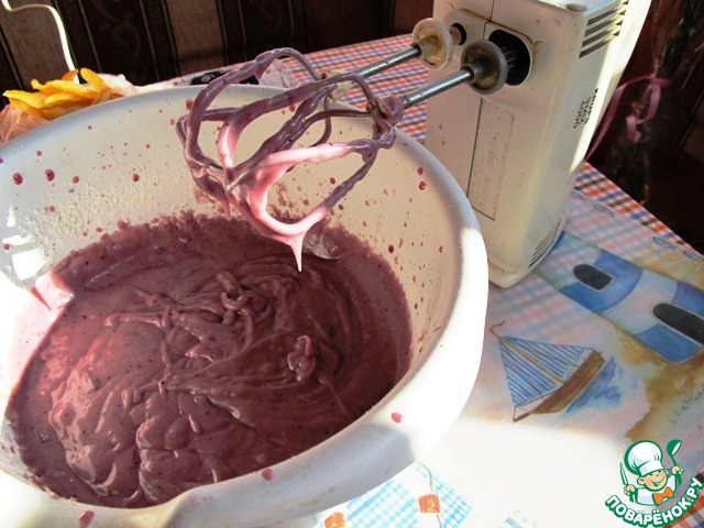 • Добавить разрыхлитель, какао, воду, сахар и цедру. Тщательно перемешать. Добавить муку — медленно, помешивая венчиком.