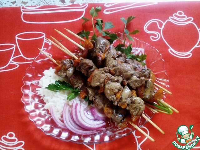 Потрясающее блюдо Якитори из куриной печени, с кусочками кураги, на шпажках, очень вкусное и красивое!! https://www.povarenok.ru/recipes/show/89909/