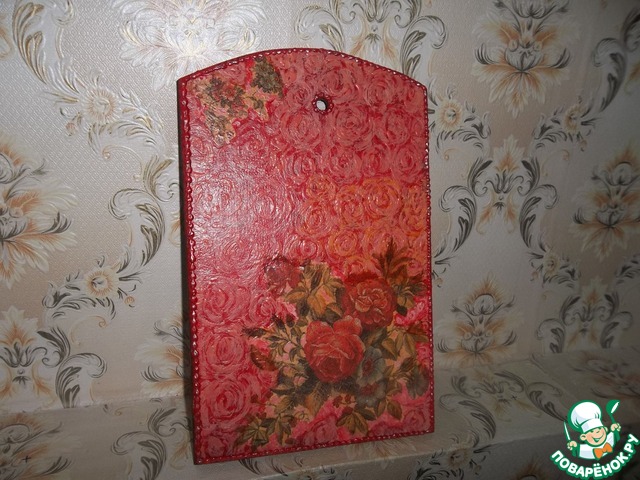 Это досочка. Применяла обычные бумажные салфетки,краски, контур,морилку .....