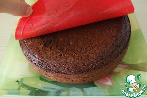 Я пыталась переворачивать спустя 20-25 минут выпекания, но было либо уже поздно, либо бисквит оседал и превращался в корж после моих манипуляций.
