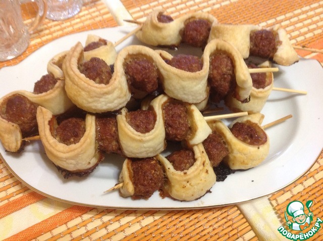 Интересная закусочка на шпажках от lili-8888 Фрикадельки со слоеным тестом на шпажках