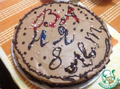 Решила приготовить в виде торта. Крем получился отличный, хорошо держал форму. Коржи бисквитные купила (позор моим сединам). Это детский тортик. Делала я его с температурой 39. Вот и наваяла. Но детворе очень понравилось. Делили кляксы, которые получились от карандашей. Хотелось, подкрасит, вот мы с сынулей и порисовали. Карандаши растекаются мгновенно. Точно также сделала и второй торт для взрослых, только увеличила количество крема в половину. Смотрелся еще лучше, высокий, крем отлично застыл и держал форму, украшала уже без выдумки. Просто посыпала какао. Температура уже не 39, но все еще есть. Мусс со второй попытки получился как надо. Варила на медленном огне. Первый раз получился чуть жидковатым. А вот второй раз густенький. Торт получился очень вкусный!!! Кофейный, влажный, просто таял во рту!!!!