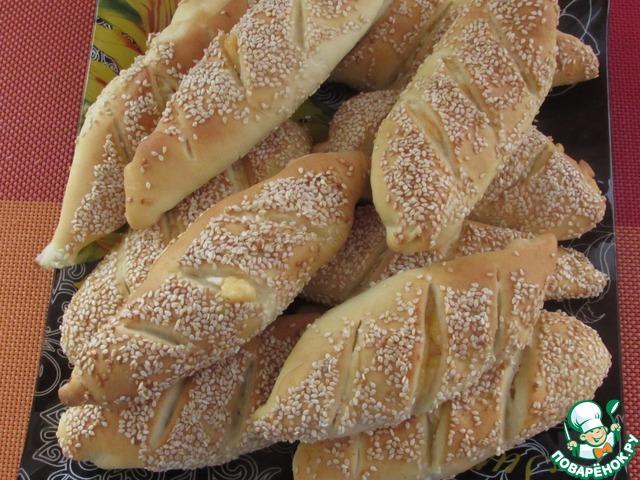 Очень вкусная сырная выпечка. Тесто получилось очень нежное, приятное. Делала половину нормы. Верх смазывала просто молоком.