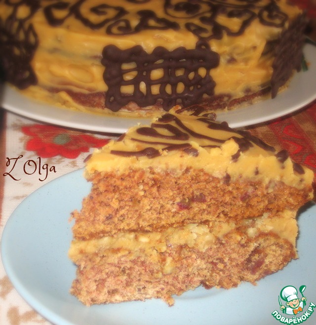 Шикарнейший торт «Арабская ночь» https://www.povarenok.ru/recipes/show/57425/ по рецепту поваренка Нина-супербабушка. Очень долго этот рецепт ждал своего часа в КК. Решила его приготовить на юбилей мамуле, зная ее любовь к финикам! Но конечно же, что в коржах финики никто не угадал
