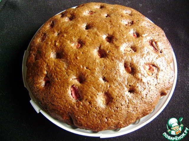 Очень вкусный и нежный пирог получился. Сверху решила украсить вишнями.