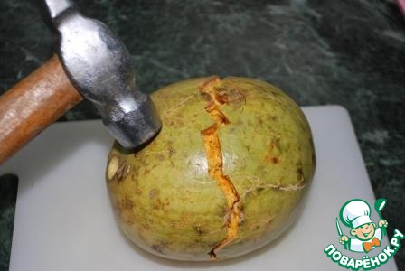 Вряд ли в большинстве своем наши Поварята когда-либо столкнуться с проблемой «как приготовить баель». Но просто ради ознакомления с экзотикой и расширения кулинарных границ размещу пару-тройку фото с процессом приготовления напитка из этого удивительного фрукта.