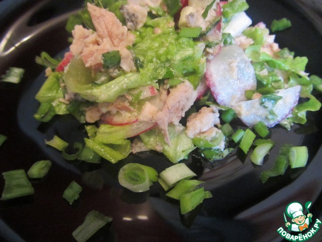 Весьма понравился Зеленый салат с горбушей и редисом. Только у меня немного изменений - горбушу я взяла консервированную и убрала из заправки мёд (не любим мы его в салатах). Получилось вкусно! https://www.povarenok.ru/recipes/show/106990/