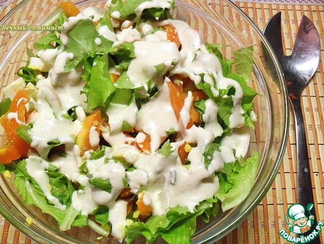 Салат из зеленого лука, яйца и болгарского перца. Тоже из разряда "Хочется по-быстрому и чего-то вкусного". Правда, я ужаснулась, когда увидела цену на перчик, но решила не откладывать его приготовление до сезона! А вот когда будут свои, уверенна, частенько его буду готовить - очень понравился нам! Только единственное было изменение - я добавила листья салата, так как, даже двойной порции, мне показалось очень мало на всех. Спасибо Танюше mtata.