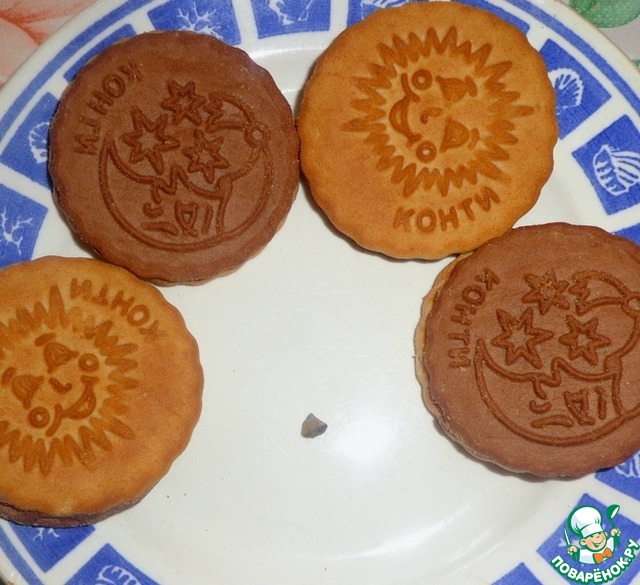 Купила я на днях печенье, называется оно "День-ночь". Название такое, потому что одно печенье светлое, а другое темное и между ними сладкая начинка