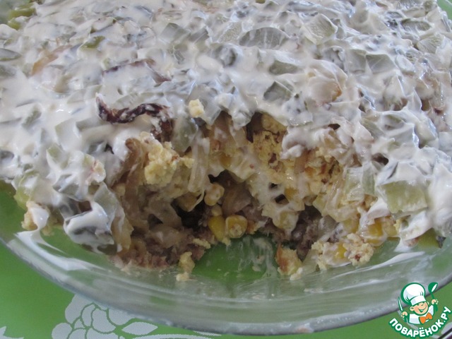 Салат "Интересная интрига" по рецепту Женечки (JeSeKi) https://www.povarenok.ru/recipes/show/95659/