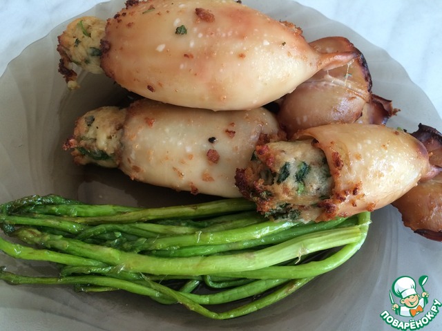 5. "Кальмары-гриль с "зелёной" начинкой" от мисс очень просто и необычно! Жаль, зубочисток не оказалось..