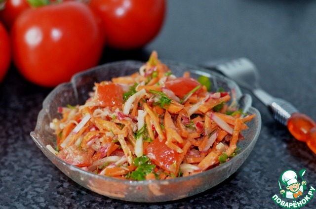 Лёгкий, полезный и вкусный салатик, с интересной заправкой!