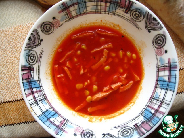 В оба супа я положила вареную колбасу, в следующий раз положу что-то копченое- думаю будет вкуснее.