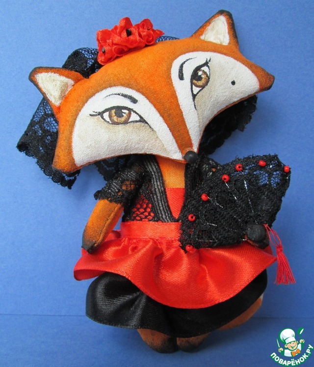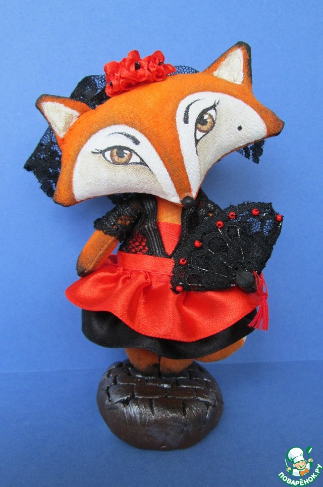 а это на спецподставочку пришлось устроить Лисичку...ибо головной убор тяжёловат и клонит её голову к полу)))))