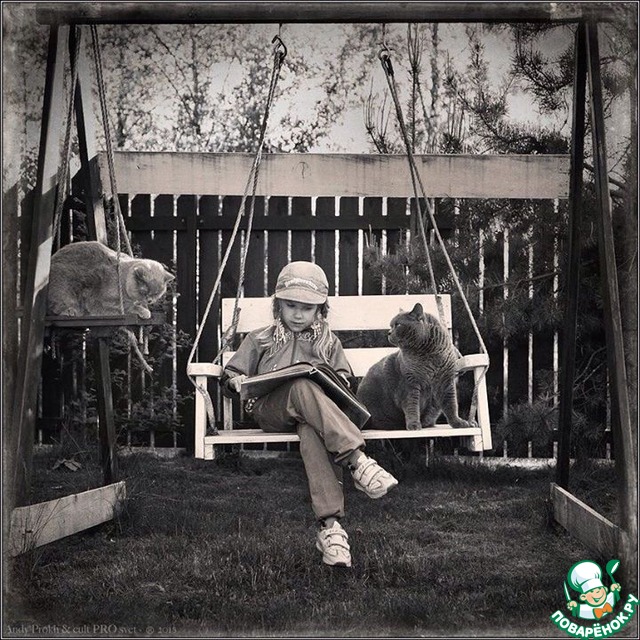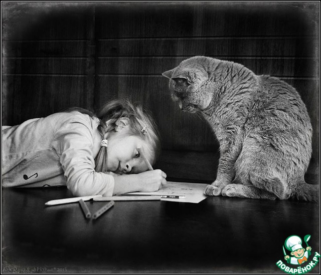 Какие классные! Подросли немножко и уже сразу взрослые занятия появились и у котов, и у ребенка, да и папе стало интереснее на свете жить