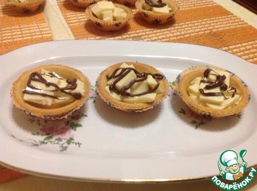 Не рискнула сделать шоколадные корзинки, побоялась что не получиться. Сделала в виде пироженного в тарталетках. Очень вкусно получилось!!! Представляю, какая вкуснота получилось бы, если б корзинка была из шоколада!!! Обещаю исправиться и переделать!!!
