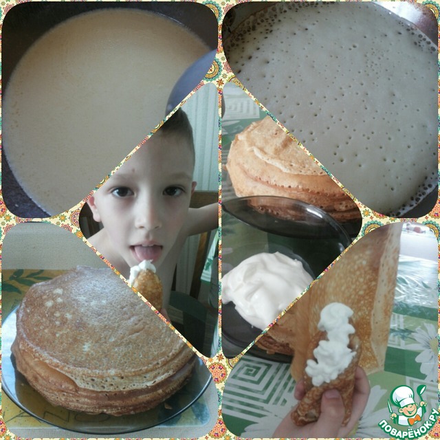 2 яйца, 13 ст.л. муки, 0,7 л сыворотки, 2 ст.л. сахара, соль смешала миксером, добавила соду гашеную уксусом. Сывороткой разбавила тесто до нужной консистенции. Делаю обычно очень жидкое тесто, т.к. люблю тонкие блины. В последний момент добавляю раст. масло в тесто. Пеку на сильном огне. Сковороду смазываю только перед первым блином.