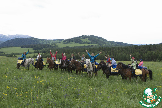 А на самом деле, ему очень нравилась наша группа: самостоятельные, не ноющие, веселые. Сами лошадей чистим, седлаем, расседлываем, сами кушать готовим и его бедолагу закармливали, а как же? Единственный мужчина!)))) Все сами) А вечером песни поем. У нас девушка из Белоруссии и казачка так здорово вместе пели! Ну, а мы так, на заднем фоне