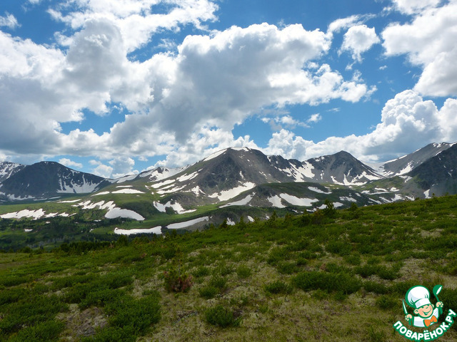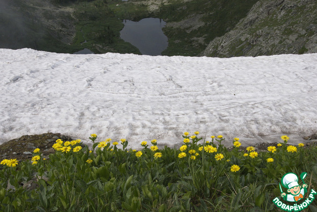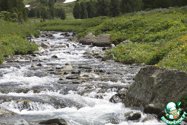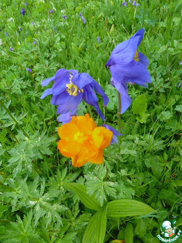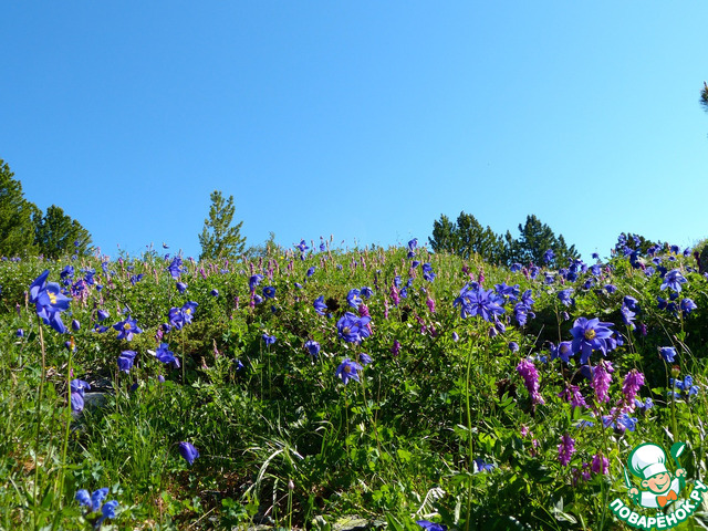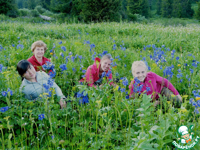 Мы были в конце июня – начале июля. И в это время в горах Алтая – весна! Цветет водосбор, цветут «огоньки», как называют их местные, дикие лилии, анютины глазки, жимолость в диком состоянии стоит с еще совсем зелеными ягодками, смородина вообще без ягод. В некоторых местах снег граничит с яркими соцветиями цветов, никогда раньше такого не видела) Очень необычный край с очень яркими контрастами, к которым я, рожденная в средней полосе, не привыкла и вообще о них не знала)