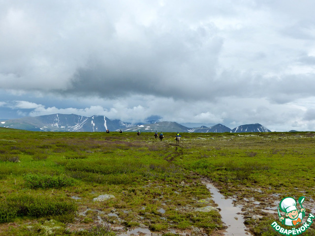 Сейчас, даже мой второй или третий день (не помню точно какой именно) вспоминается с улыбкой: мы ехали по горному плато, поросшему карликовыми березками и ивами (мне по колено), далеко-далеко впереди маячила вершина горы, означавшая начало спуска, сверху лил дождь, достаточно сильный, дул холодный пронизывающий ветер. В общем и целом погода была мрачная, холодная и настроение стойко держалось на отметке «нуль». Видимо, именно из-за напавшей на меня хандры, небо решило проучить нытика (хотя ныла я только про себя, нельзя же портить настроение всей группе) и после обеденного привала, я не смогла должным образом расправить тяжелый плащ, защищающий от дождя (пометка начинающий походникам – не скупитесь, купите себе высокие резиновые сапоги, водонепроницаемые штаны и куртку. В том же Декатлоне уложиться за все про все можно в 2500-3000 руб). Вода бодрыми ручейками залилась в сапоги, превратив те в аквариумы, что при такой погоде и перспективе еще многочасового перехода, мягко говоря, было плохо. Кощунственная мысль, закравшаяся в мою бедовую голову, оказалась тем самым «карканьем». «Хуже быть уже не может…» И сверху посыпался град. Вывод, никогда не теряйте присутствия духа и находите плюсы даже в самых отвратительных ситуациях – хуже всегда есть куда!)))