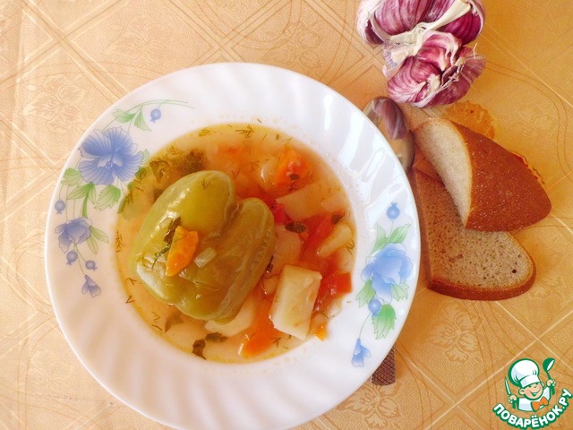 Наивкуснейший рецепт,за что спасибо LapSha Maria https://www.povarenok.ru/recipes/show/91708/ Никогда до этого не готовила перцы с "супом" вместе - очень вкусно!! Бульон ароматный,наваристый - замечательное блюдо,буду готовить не раз!!