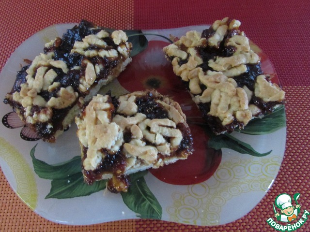 Обычные продукты, легко готовить. Но результат очень вкусный! Если кто надумает приготовить, обязательно натрите верхний слой теста, как указано в рецепте. По-моему, это и есть изюминка. Вместо джема у меня было малиновое варенье и два вида яблочного повидла. Вкусно в любом варианте. Кстати, варенье было жидкое, но тесто отлично пропеклось.