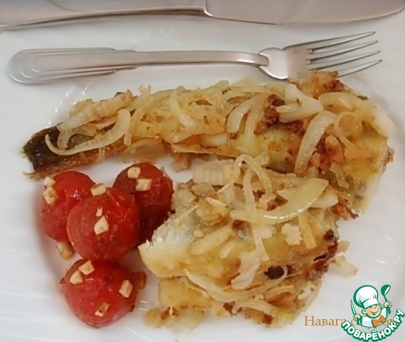Навага с луком,автор Мариана,Мариана Г, - очень вкусная,нежная и сочная рыбка,просто прелесть!Обваливала я навагу в манной крупе.