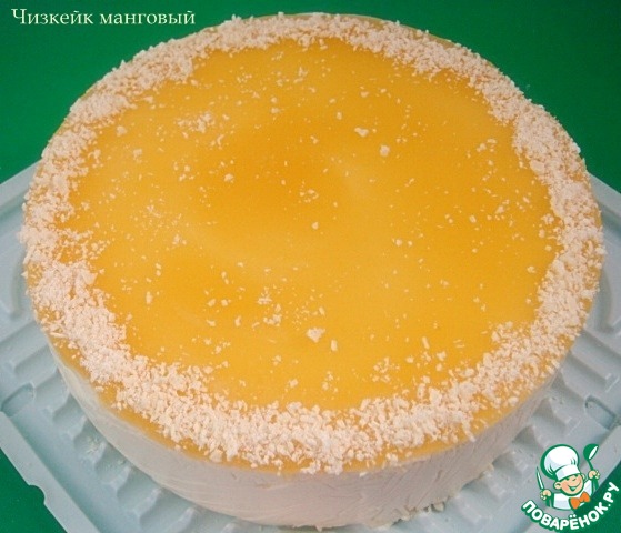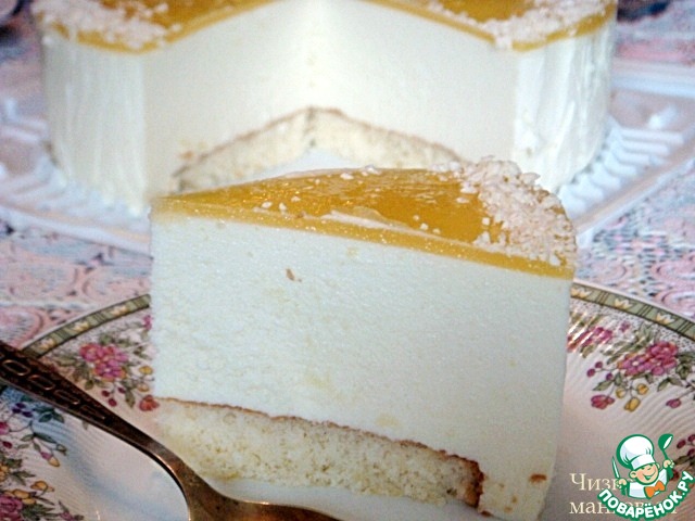 Чизкейк "Манговый" я готовила в форме диаметром 18 см из пюре консервированных персиков,для основы испекла бисквит.Необыкновенно нежный,с насыщенным фрктовым вкусом,ароматный торт.Это был мой подарок папе ко Дню отца.