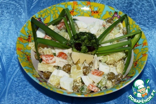 Салат дочь, конечно, тоже готовила сама - но "Оливье", это не интересно. Интересное тут - украшение.