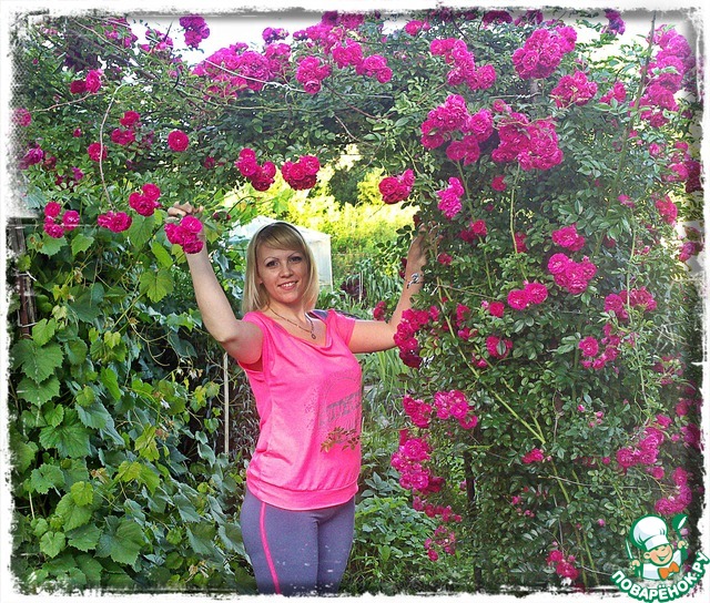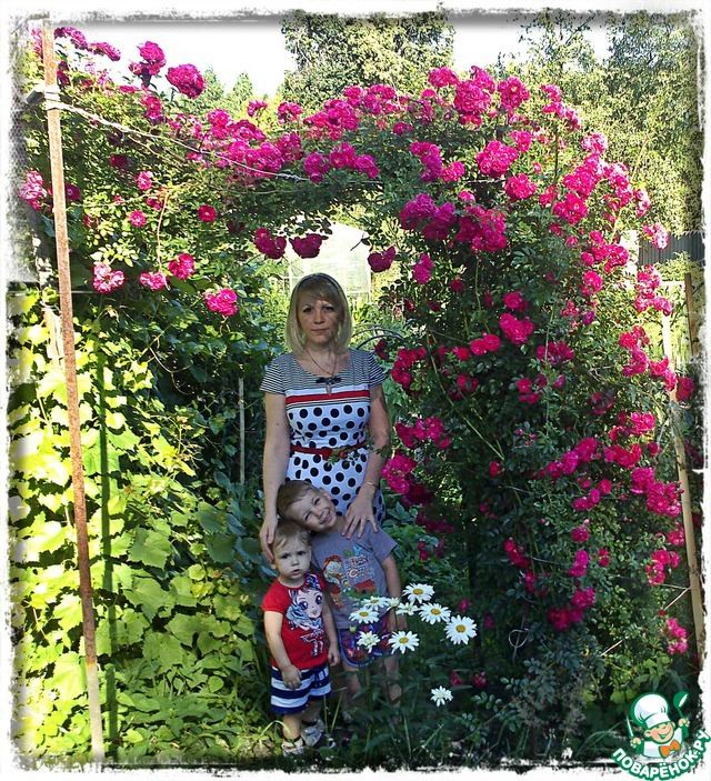 Справа алые розы муж подарил, слева розовые розы сыночек мой любимый вручил, а по центру свекр подарил.