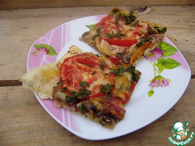 Очень вкусное тесто. Тоненькое, как я люблю и как должно быть на настоящей пицце.