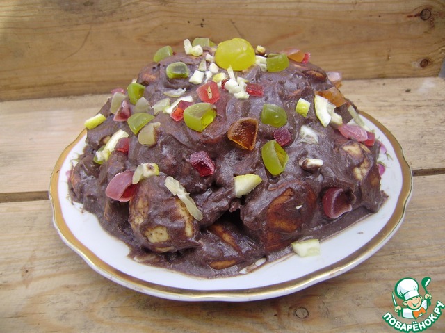 Вкусный и красивый тортик. А еще из очень доступных продуктов. Малая пожелала украсить мармеладом.